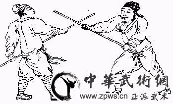 ●将棍坚把住,用身势(棍头高)慢慢侵入。他大门来,我大门接,一下只离一寸;他小门来,我小门接,一下只离一寸:待他何门死,我尽身入。?